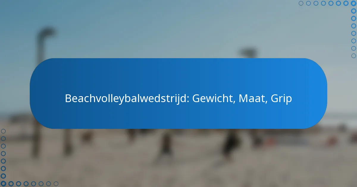 In beachcompetitievolleybal varieert het standaardgewicht van de ballen van 260 tot 280 gram, wat essentieel is voor optimale prestaties. Deze volleybal moet ook voldoen aan specifieke maatvoorschriften, die doorgaans een diameter van 65 tot 67 centimeter hebben. Daarnaast speelt de grip van een beachvolleybal een cruciale rol in het spel, waardoor de controle en hantering van de bal verbeteren, vooral in zandachtige omstandigheden.
