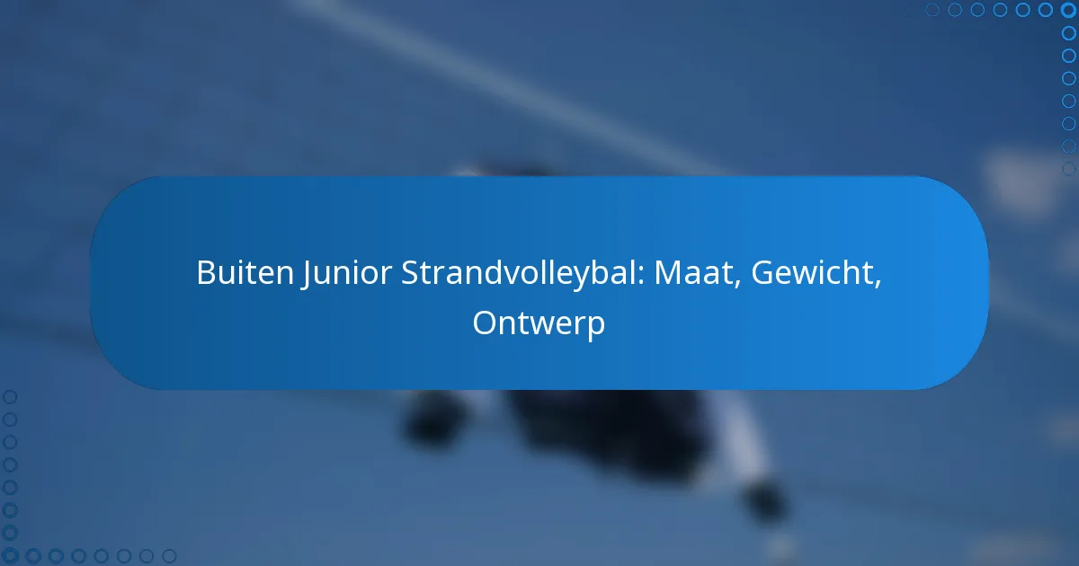 Buitenspeel junior beachvolleybal heeft doorgaans een omtrek van ongeveer 65 tot 67 centimeter en weegt tussen de 250 en 280 gram. Deze specificaties zijn ontworpen om tegemoet te komen aan jongere spelers, zodat de bal beheersbaar en geschikt is voor hun vaardigheidsniveau.